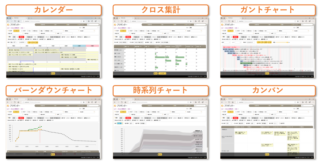 豊富なデータ分析・見える化機能により、データを蓄積すれば様々なチャートによる見える化が行えます。