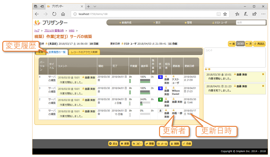 いつ、誰が、どのような変更を行ったのか把握できます。