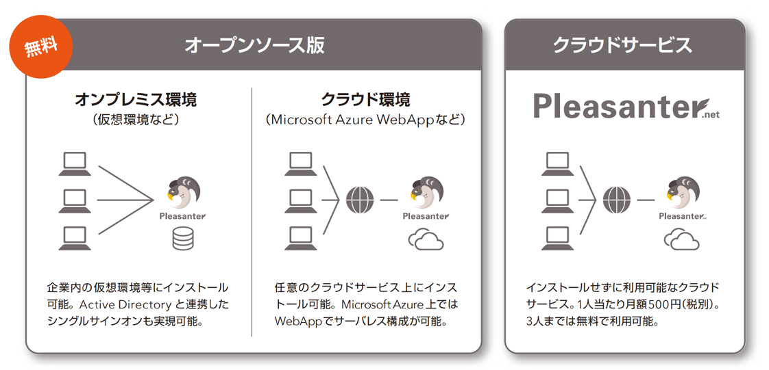 動作環境はオンプレミスからクラウドサービスまで自由に選択可能です。