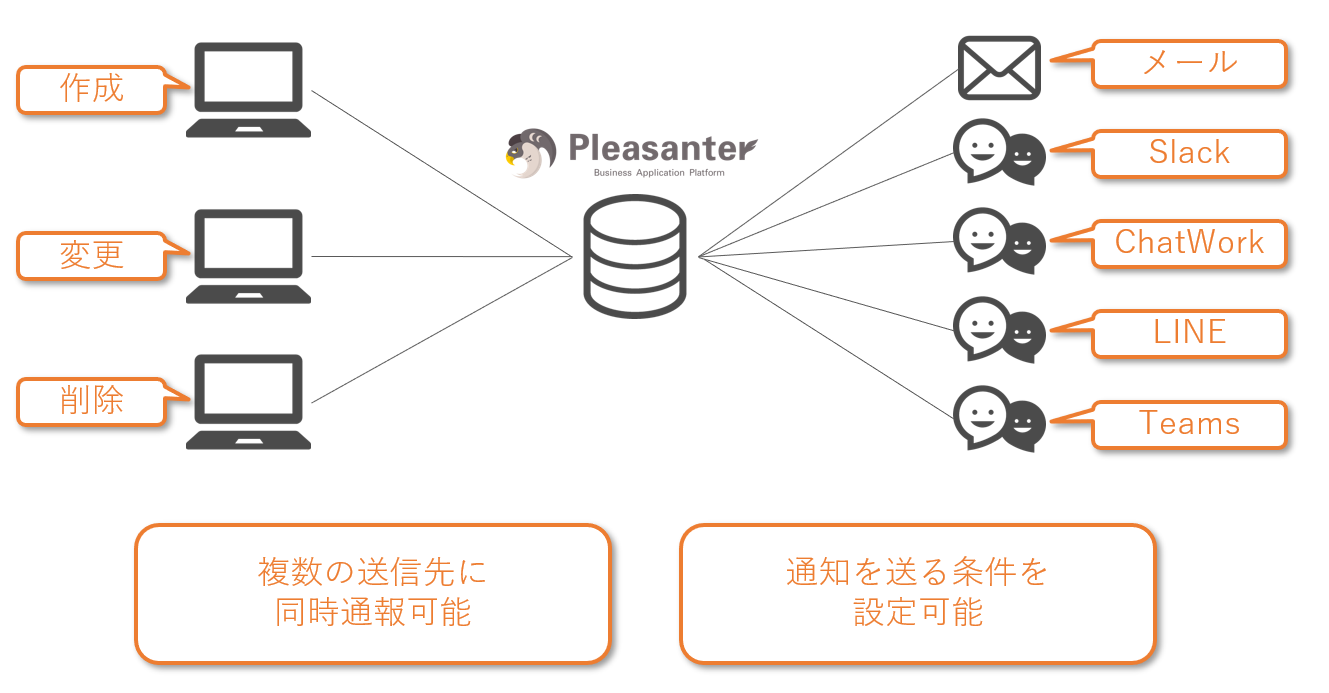 レコードの作成や変更等が行われた際、メール、Teams、Slackなど様々な