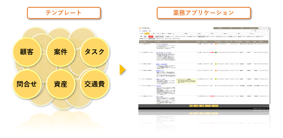 数百種類のテンプレートを活用し、様々な業務アプリケーションが手間をかけずに素早く作成できます。