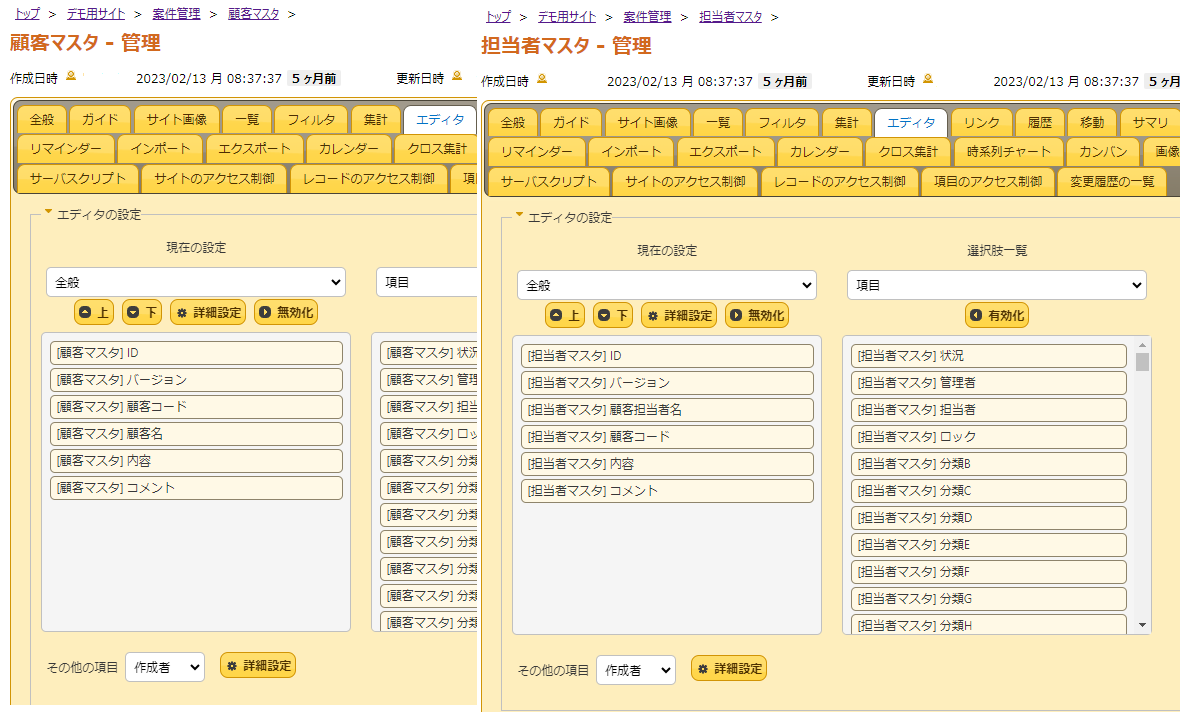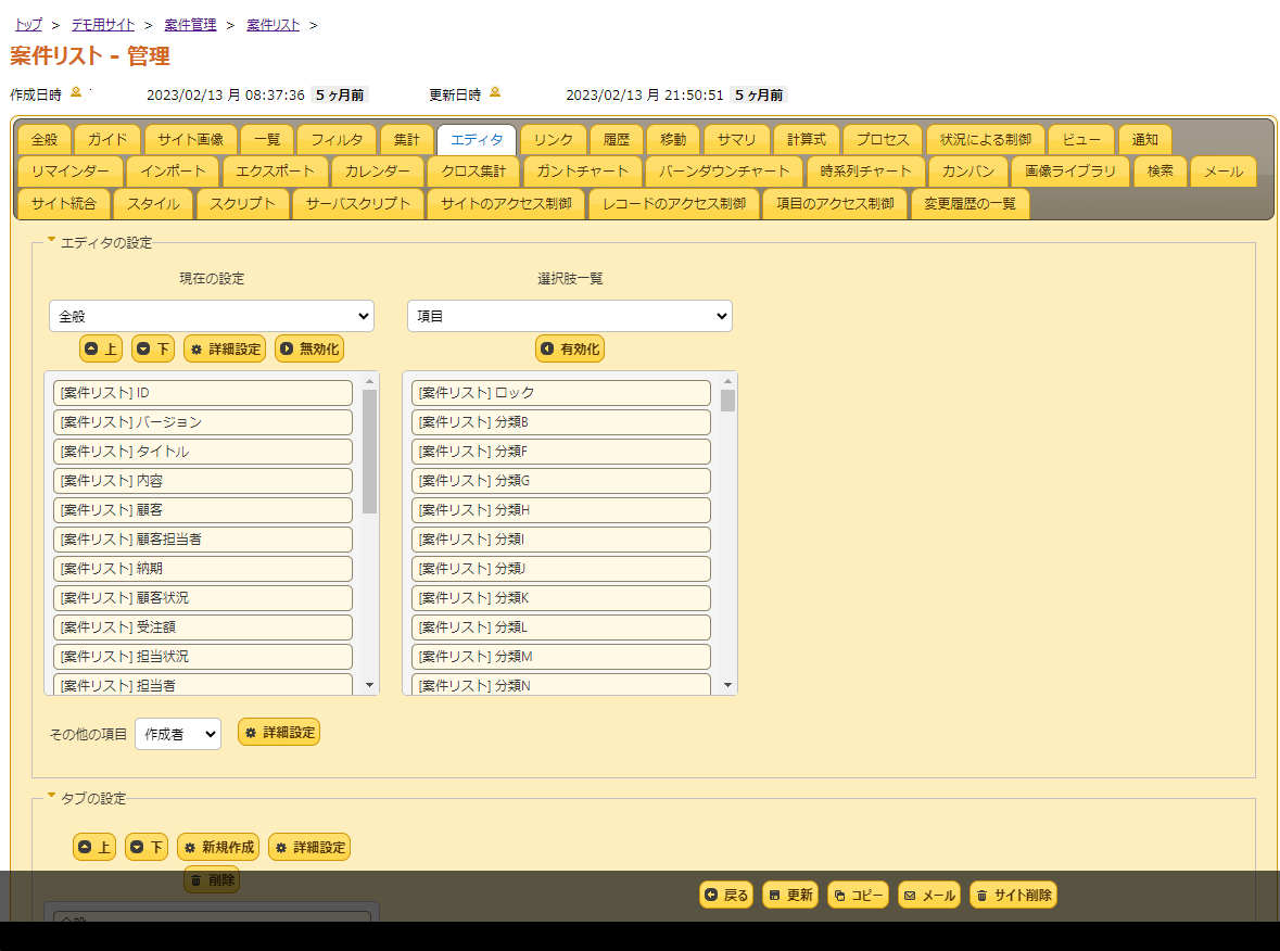 あとは一覧で表示する項目やフィルタをかけたい項目などを設定すれば、概ね出来上がりです。