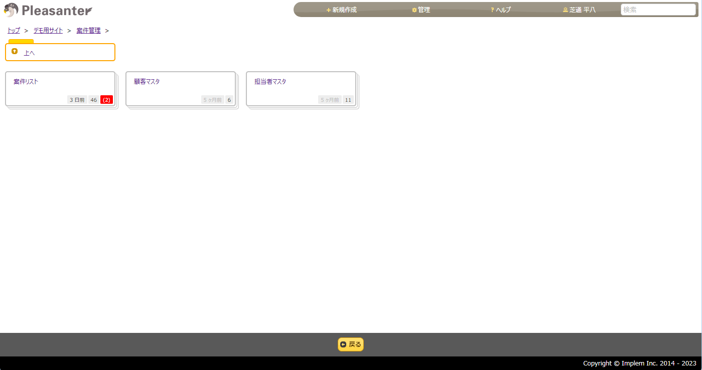 まずは「案件管理」フォルダを作成し、そのフォルダ内に期限付きテーブルで「案件リスト」を、記録テーブルで「顧客マスタ」と「担当者マスタ」を作成しました。
